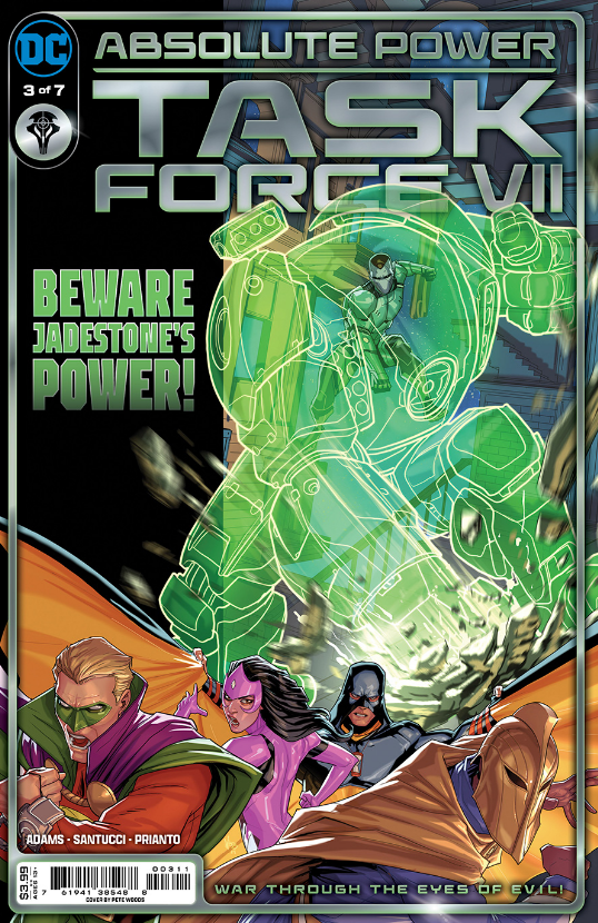 After capturing and absorbing the powers from the JSA, Jadestone is compromised by Green Lantern Alan Scott's willpower. Suddenly faced with the concept of free will, does JADESTONE continue to execute Waller's orders or have a change of heart? Meanwhile the remaining JSA members attempt a rescue mission to retrieve their teammates and escape to the Tower of Fate!