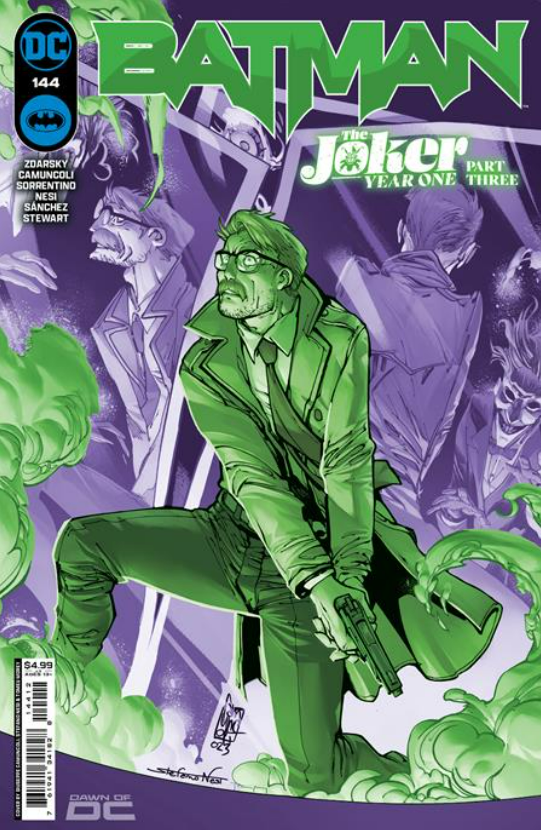 THE CHILLING CONCLUSION TO THE JOKER YEAR ONE! The climactic, chilling conclusion to "The Joker Year One" that will have massive repercussions for the future! The Red Hood Gang is on a rampage and the only man who can stop them… is The Joker! And can Batman stop a devastating new virus in a future where The Joker looms over him?